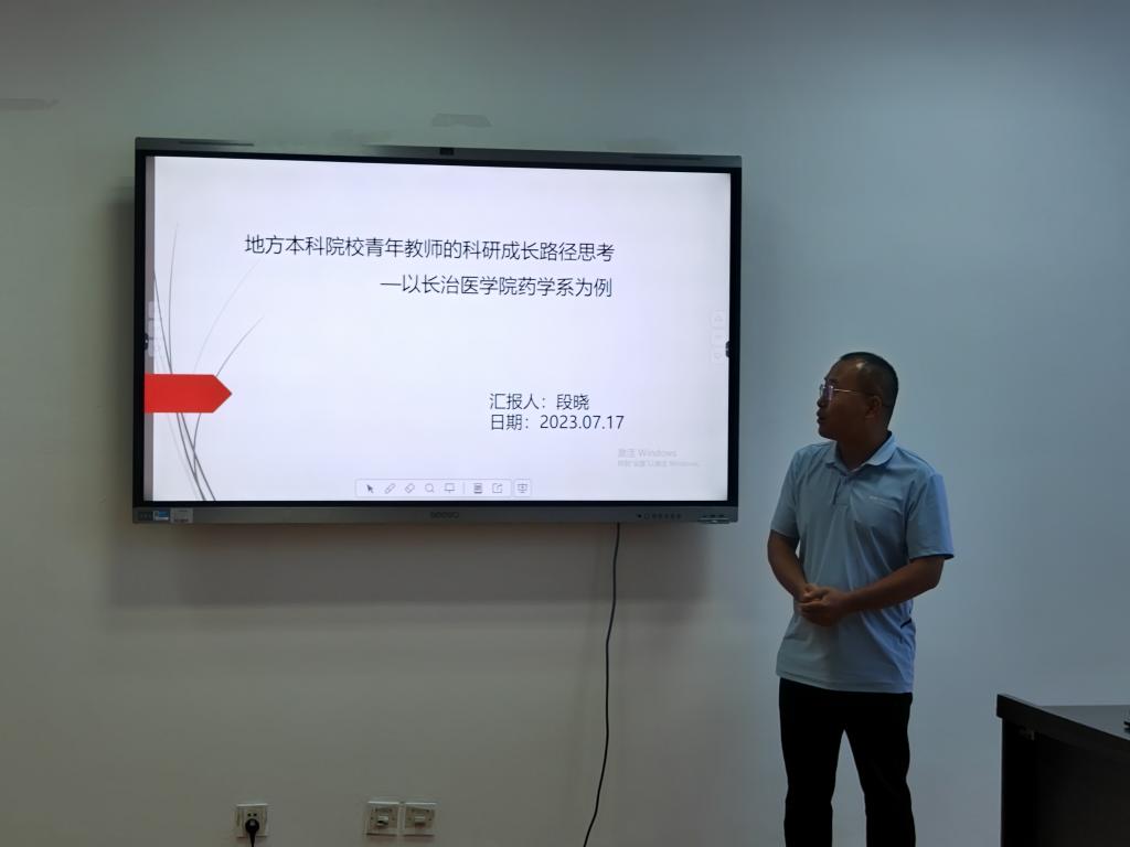 研讨会上,段晓博士作为优秀青年教师代表,结合自身成长经历做了就地方本科院校青年教师的科研成长路径进行了交流,指出一要厘清系部的现状、见缝插针创条件,二要实现系部个人共发展、校内校外资源共享,三要坚持不懈常动手、交叉联合“走捷径”,四要互惠互利谋长远、形成团队有靠山。