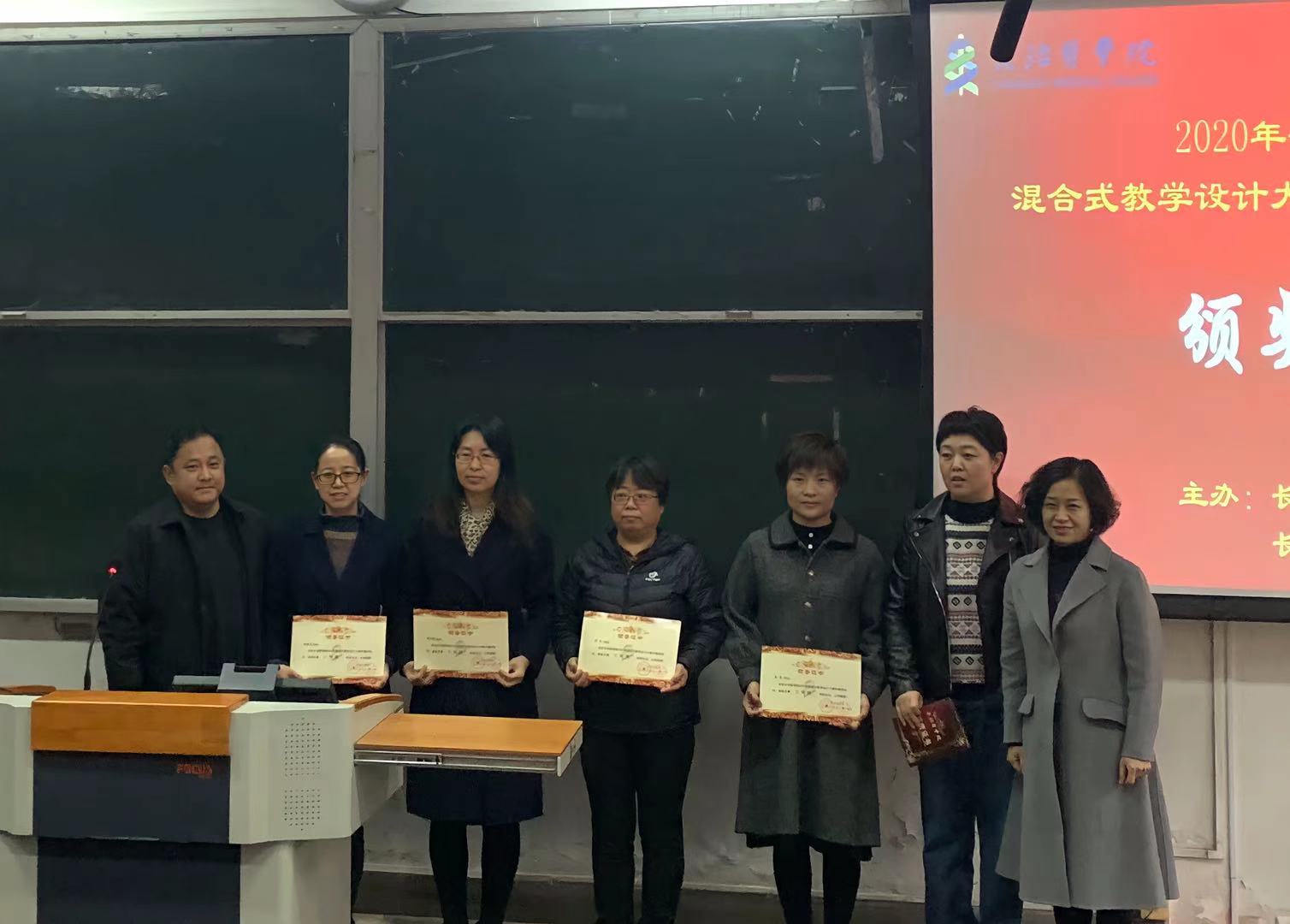 副校长宋晓亮工会主席吴建勇教务处处长郭步平副处长来丽娜、苗知春分别获奖教师颁发奖状